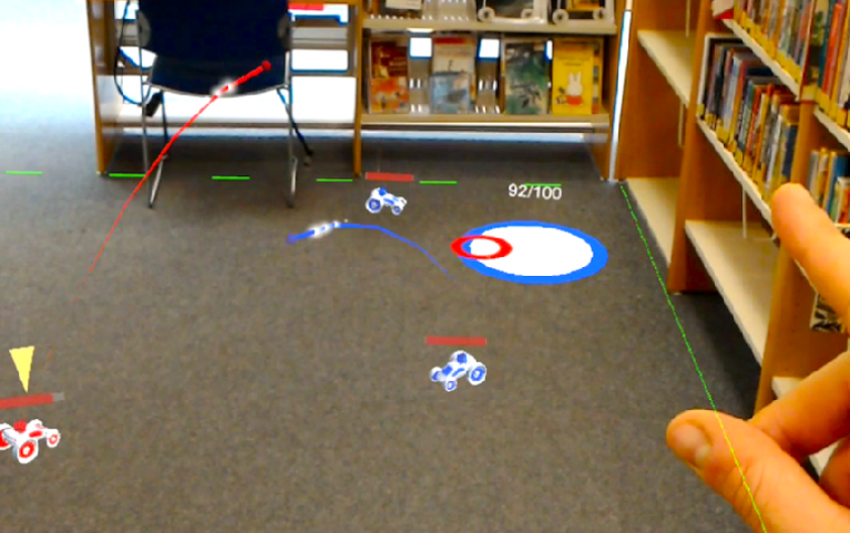 A competitive capture-the-flag augmented reality game for the HoloLens. Players control a group of four buggies, which they can use to strategically protect their own flag while stealing the enemy's.
