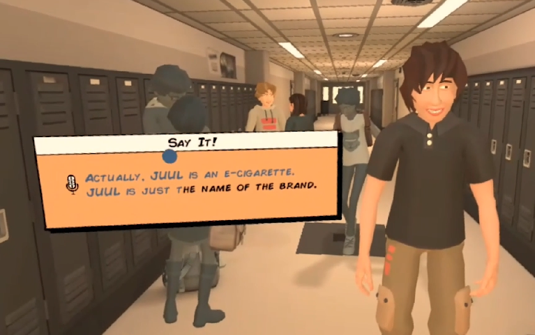 An educational virtual reality game aimed at teens to help teach how to properly refuse peer-pressure, specifically relating to vaping and e-cigarettes.  Created for the play4REAL Lab at Yale's Center for Health & Learning Games.