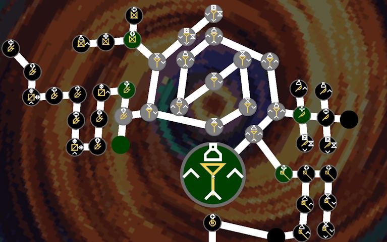 A silly wizardry game about getting more and more sand. The player mixes reagents into higher value elements to convert into mana. They use the upgrade tree to level up and unlock new features.