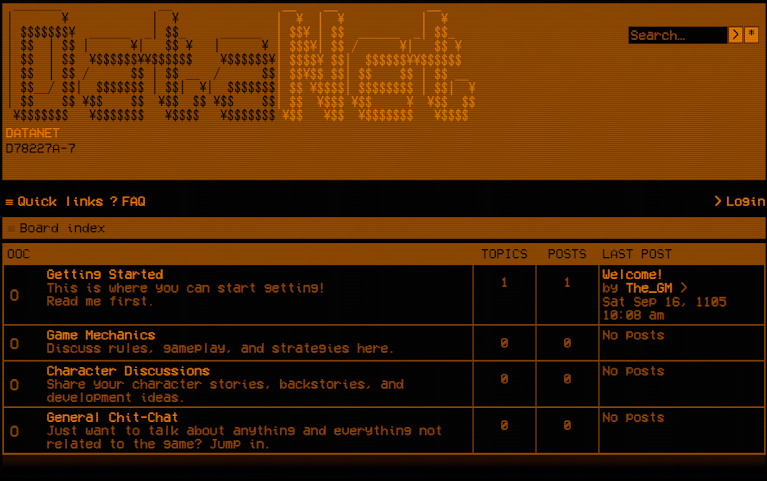 Platform: Web Engine: phpBB Role: Designer / Writer Development: Hobby |
